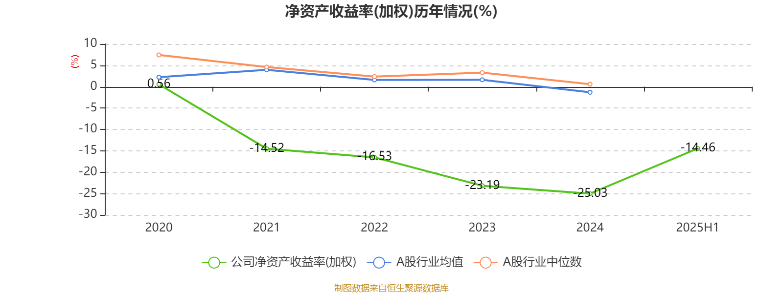 2025年上半年,公司平均净资产收益率为-14.46%,较上年同期下降4.31个百分点。