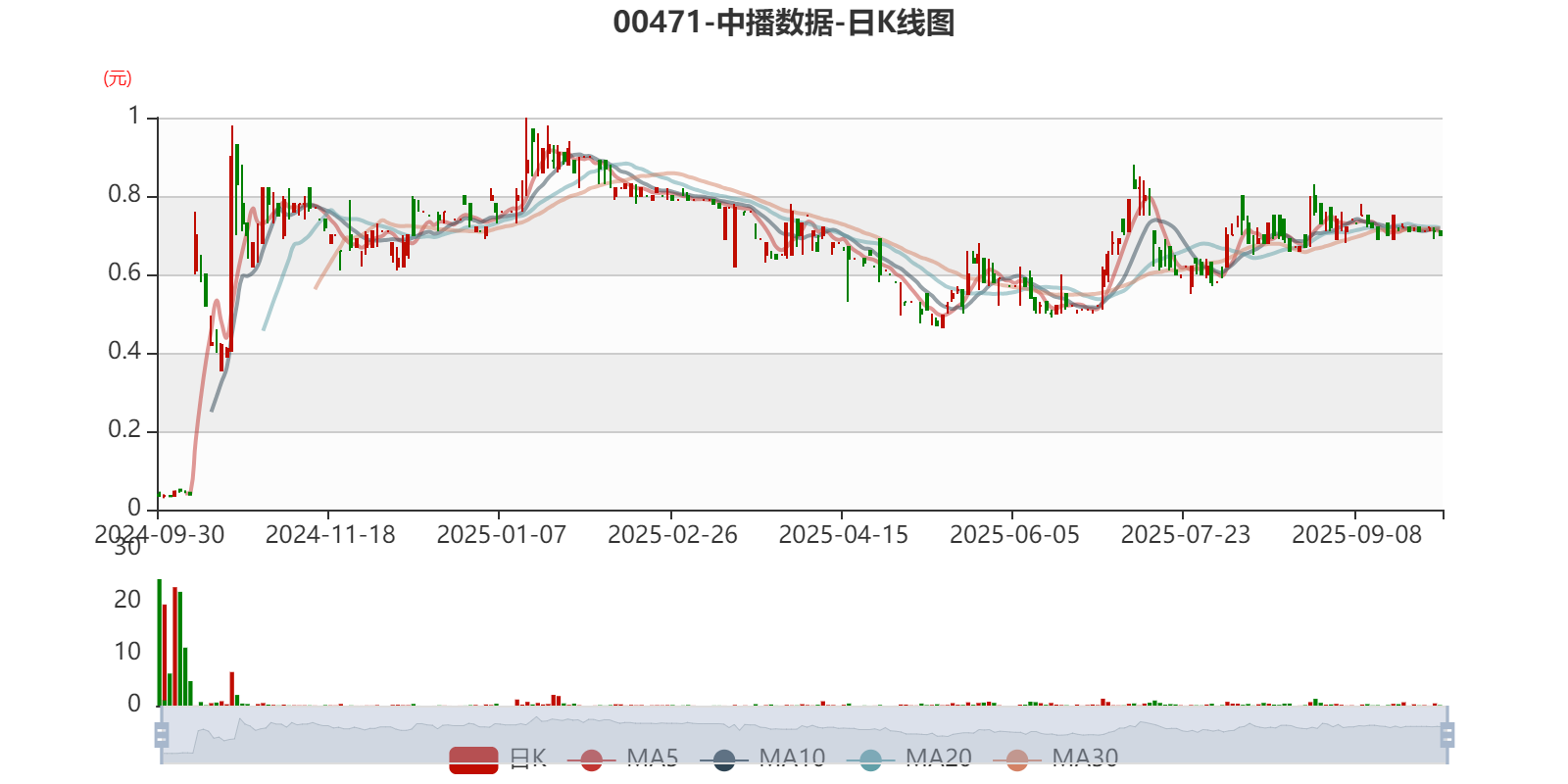 以9月30日收盘价计算,中播数据目前市净率(TTM)约0.57倍,市销率(TTM)约1.73倍。