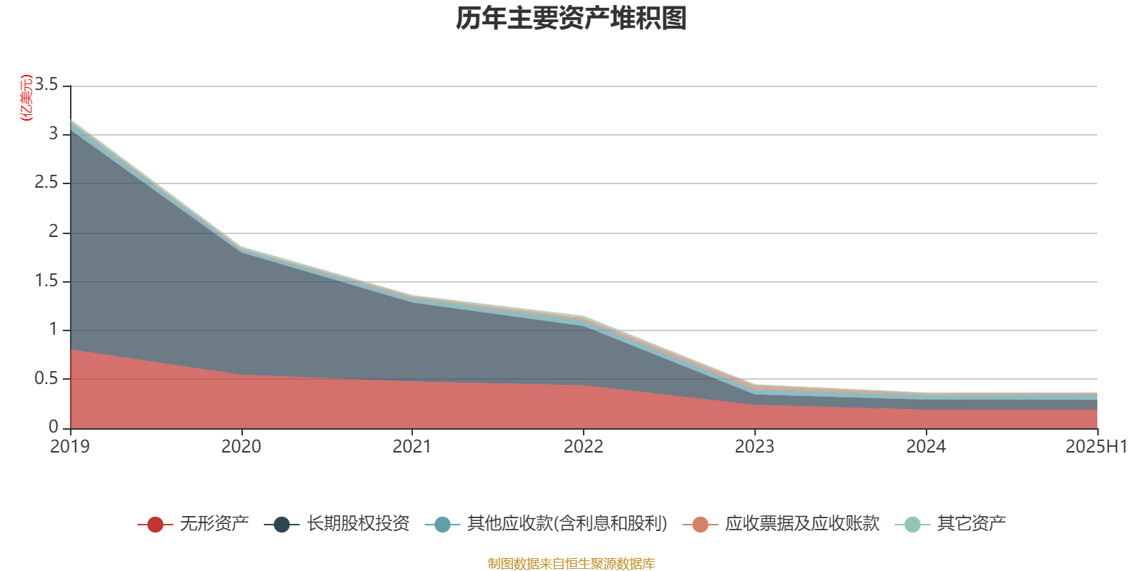 资产重大变化方面,截至2025年上半年,公司其他应收款(含利息和股利)较上期末增加12.64%,占公司总资产比重上升1.65个百分点;货币资金较上期末减少62.32%,占公司总资产比重下降1.52个百分点;长期股权投资较上期末减少2.28%,占公司总资产比重下降0.65个百分点;应收票据及应收账款较上期末增加13.89%,占公司总资产比重上升0.6个百分点。