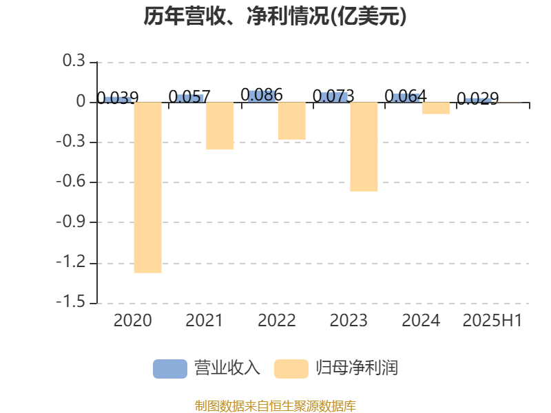 中证智能财讯中播数据(00471)9月30日披露2025年中期报告。报告期内,公司实现营业收入293.5万美元,同比下降6.29%;归母净利润亏损31.1万美元,上年同期亏损49.8万美元;据报告显示,中播数据基本每股收益为-0.0033美元,平均净资产收益率为-1.66%。