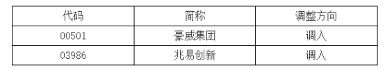 上证报中国证券网讯深交所2月9日公告,因豪威集团(00501)、兆易创新(03986)在香港市场价格稳定期结束且相应A股上市满10个交易日,根据《深圳证券交易所深港通业务实施办法》的有关规定,港股通标的证券名单发生调整并自2026年02月09日起生效,相关调整信息如下: