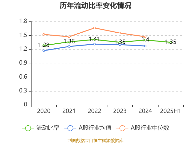 2025年上半年,公司流动比率为1.35,速动比率为0.84。