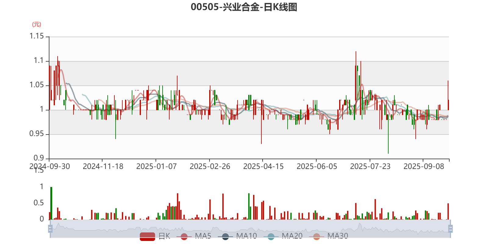 以9月29日收盘价计算,兴业合金目前市盈率(TTM)约4.05倍,市净率(TTM)约0.37倍,市销率(TTM)约0.09倍。