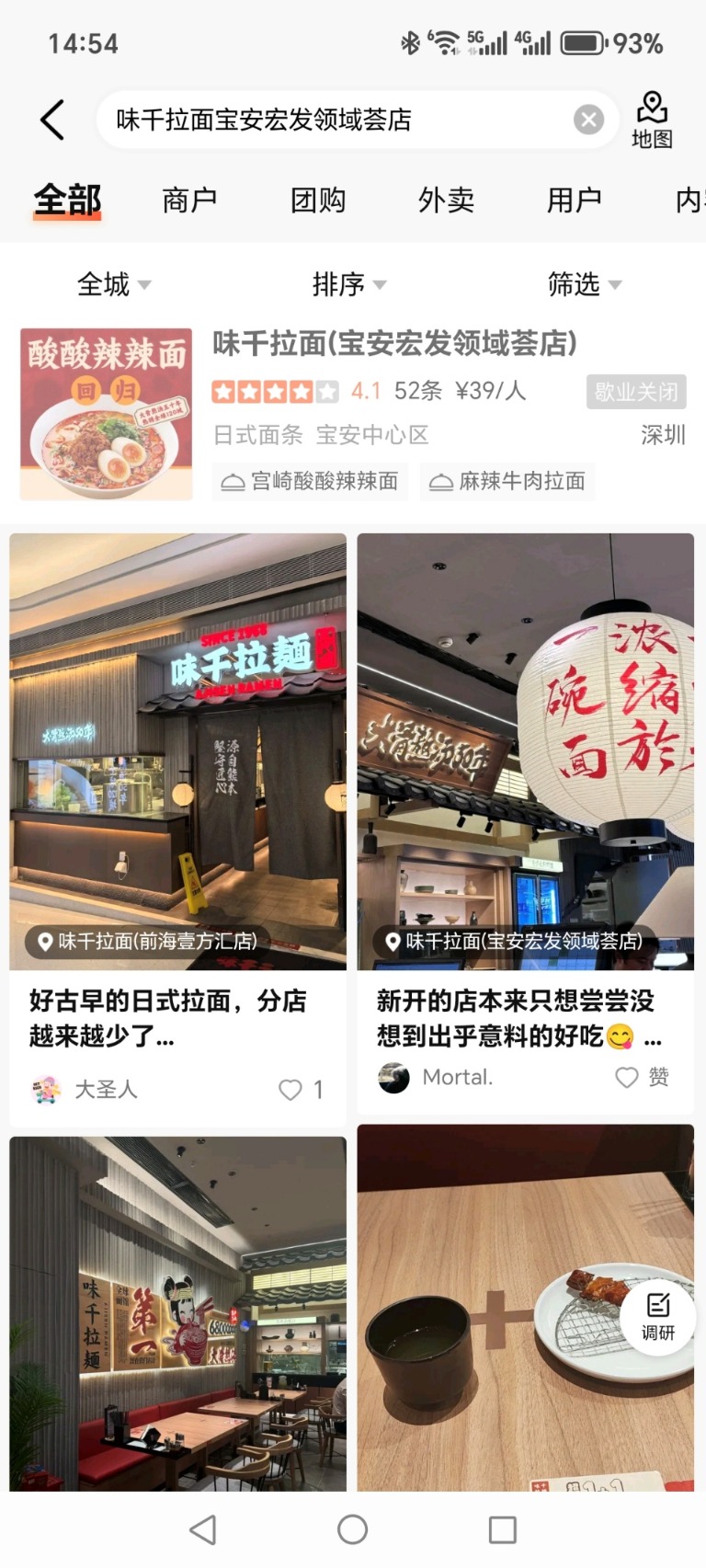 通过大众点评搜索“味千拉面宝安宏发领域荟店”显示,该店铺已经处于“歇业关闭”状态。