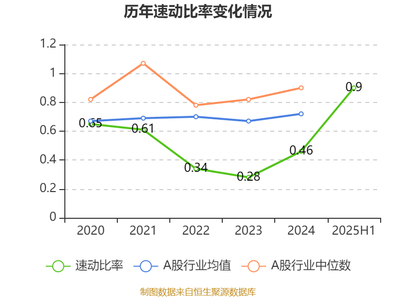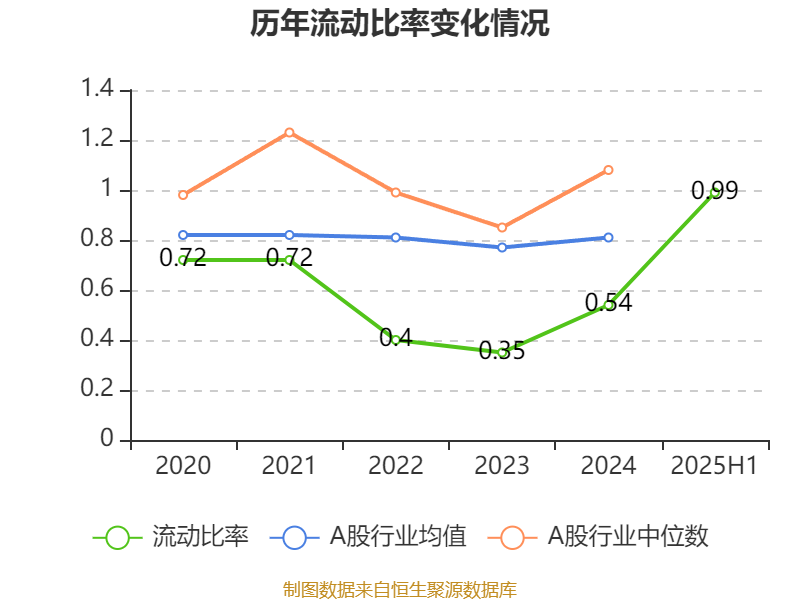 2025年上半年,公司流动比率为0.99,速动比率为0.9。
