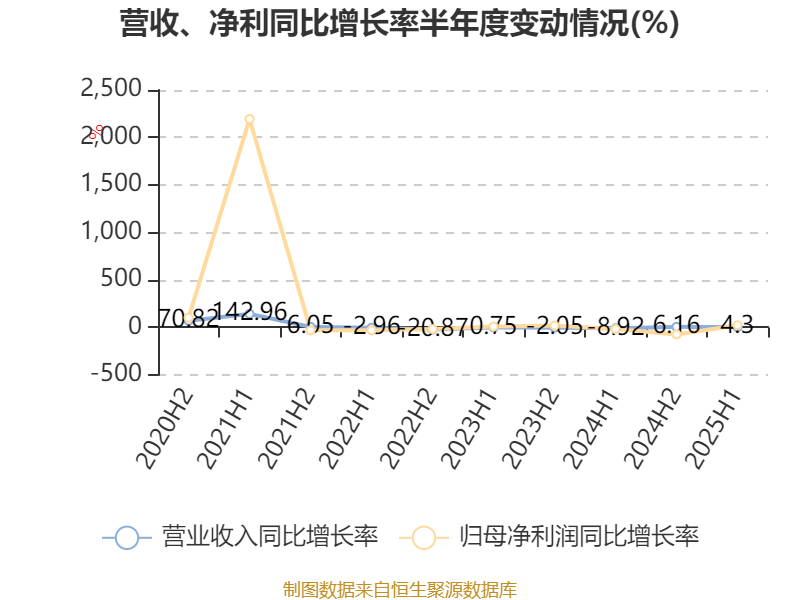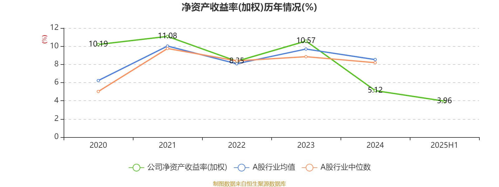 2025年上半年,公司平均净资产收益率为3.96%,较上年同期上升0.46个百分点。