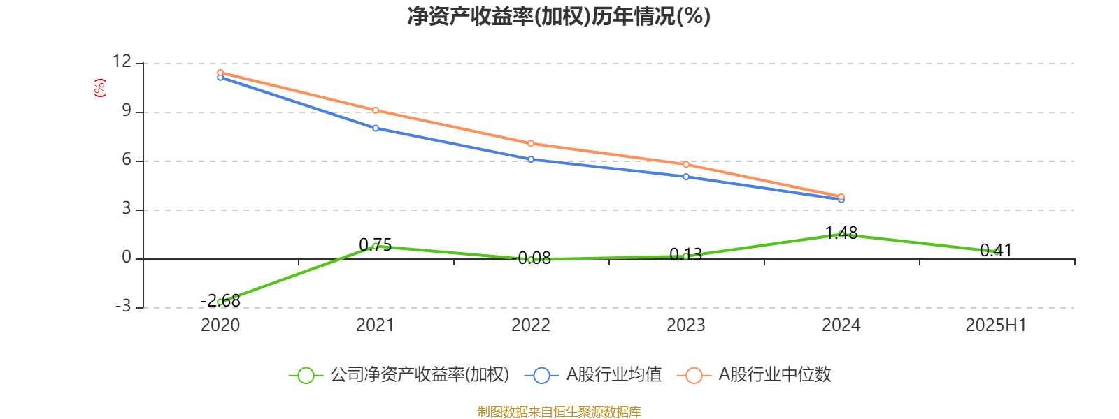 2025年上半年,公司平均净资产收益率为0.41%,较上年同期下降0.15个百分点。