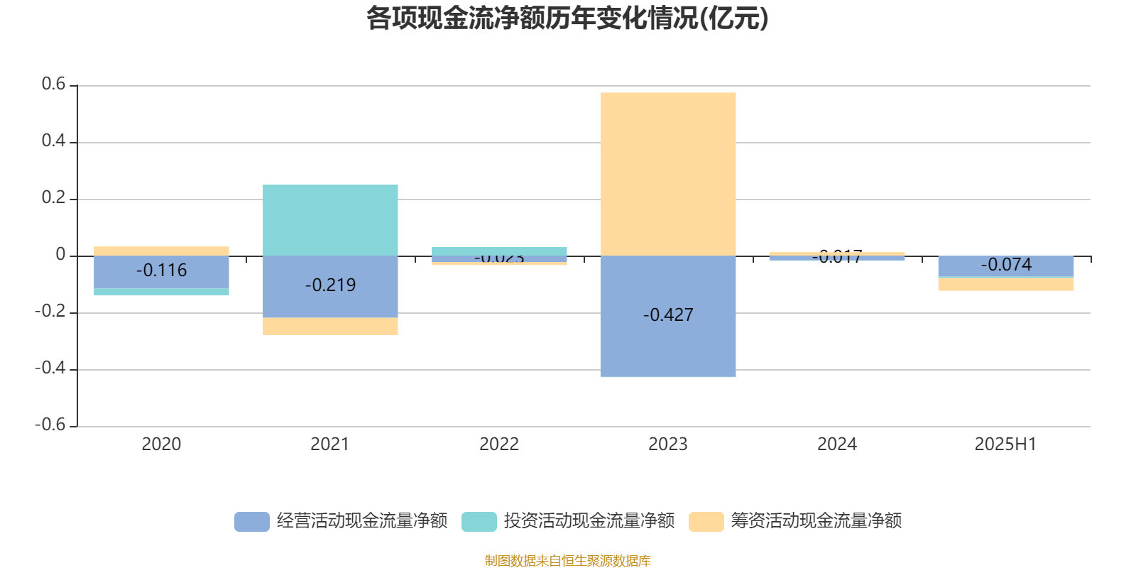 2025年上半年,公司经营活动现金流净额为-738.2万元;筹资活动现金流净额-450万元;投资活动现金流净额-52.8万元。