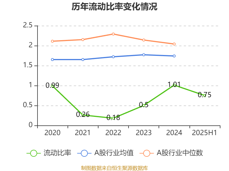 2025年上半年,公司流动比率为0.75,速动比率为0.57。