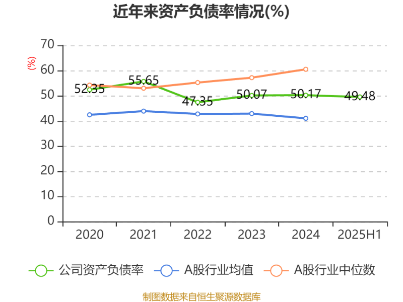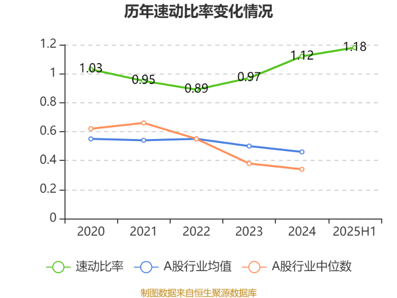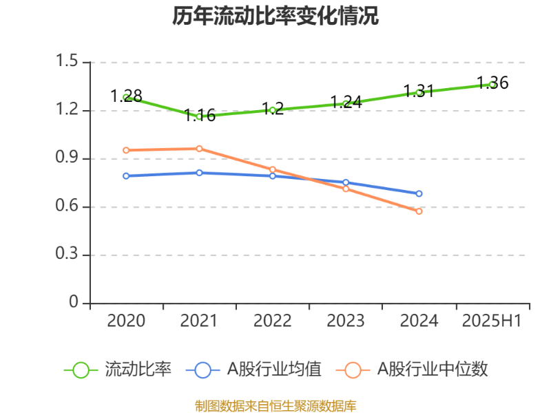 2025年上半年,公司流动比率为1.36,速动比率为1.18。