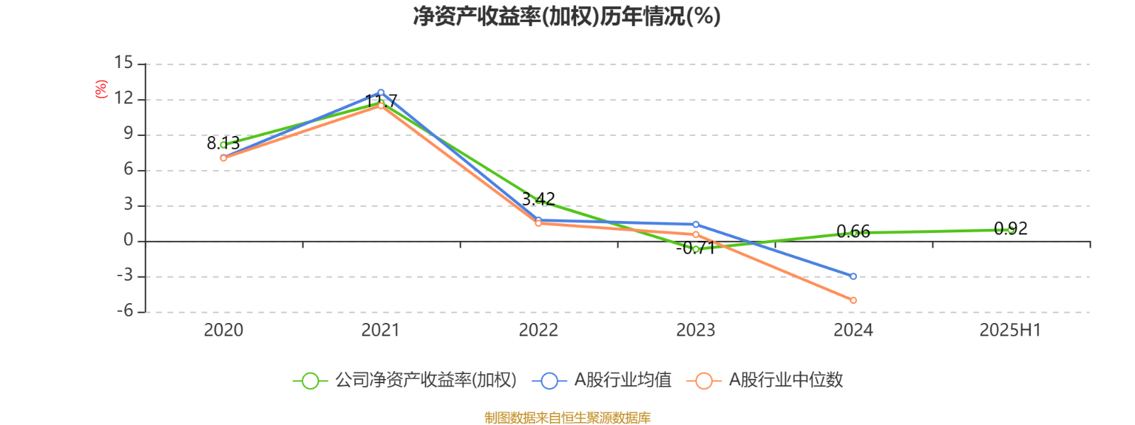 2025年上半年,公司平均净资产收益率为0.92%,较上年同期上升0.5个百分点。