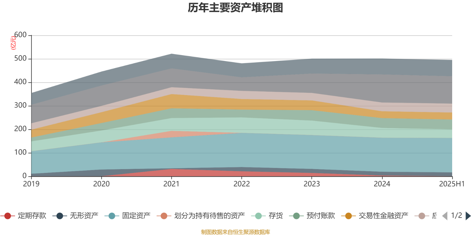 资产重大变化方面,截至2025年上半年,公司存货较上期末减少12.31%,占公司总资产比重下降0.94个百分点;长期股权投资较上期末增加38.55%,占公司总资产比重上升0.85个百分点;固定资产较上期末增加1.29%,占公司总资产比重上升0.73个百分点;定期存款较上期末减少100%,占公司总资产比重下降0.6个百分点。