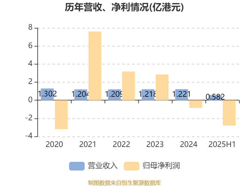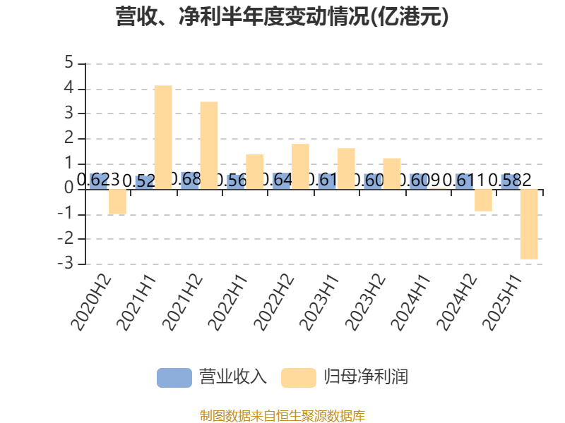 中证智能财讯长城环亚控股(00583)9月25日披露2025年中期报告。报告期内,公司实现营业收入5821.5万港元,同比下降4.48%;归母净利润亏损2.8亿港元,上年同期盈利451.8万港元;据报告显示,长城环亚控股基本每股收益为-0.1786港元,平均净资产收益率为-7.41%。