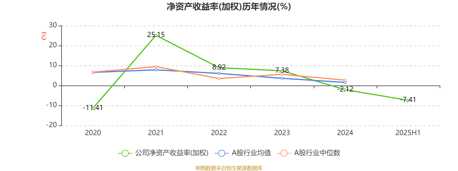 2025年上半年,公司平均净资产收益率为-7.41%,较上年同期下降7.52个百分点。