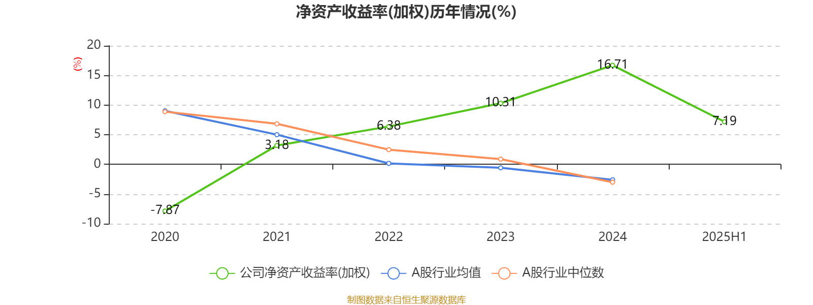 2025年上半年,公司平均净资产收益率为7.19%,较上年同期上升2.15个百分点。