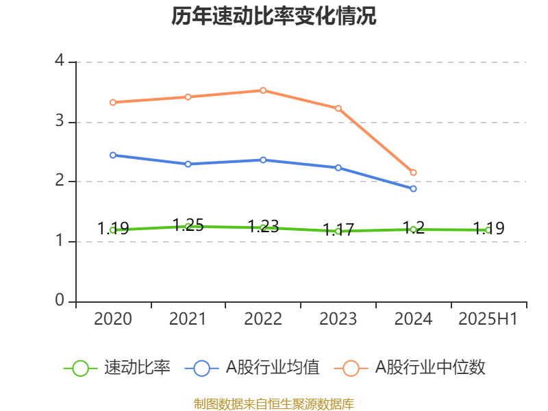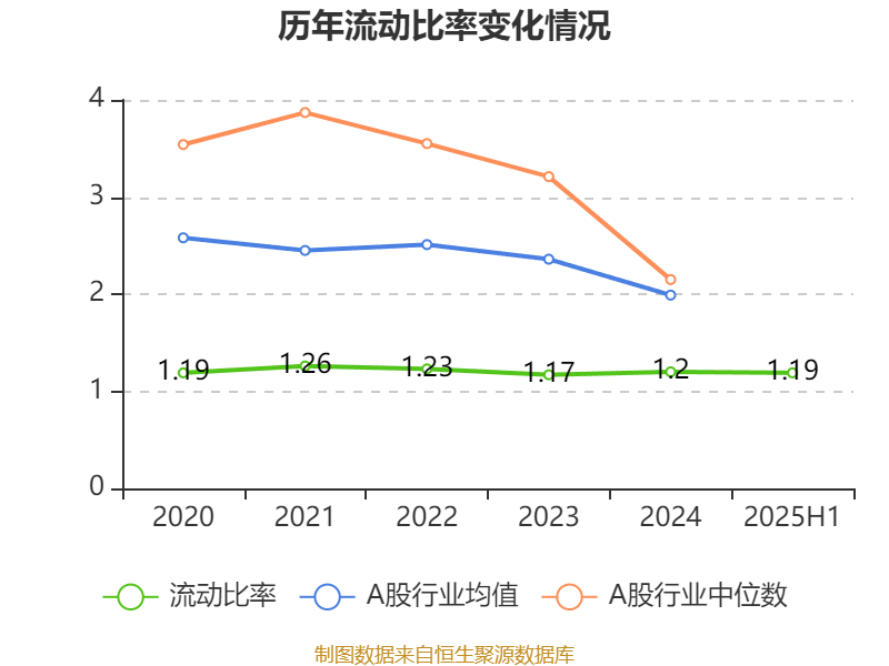 2025年上半年,公司流动比率为1.19,速动比率为1.19。