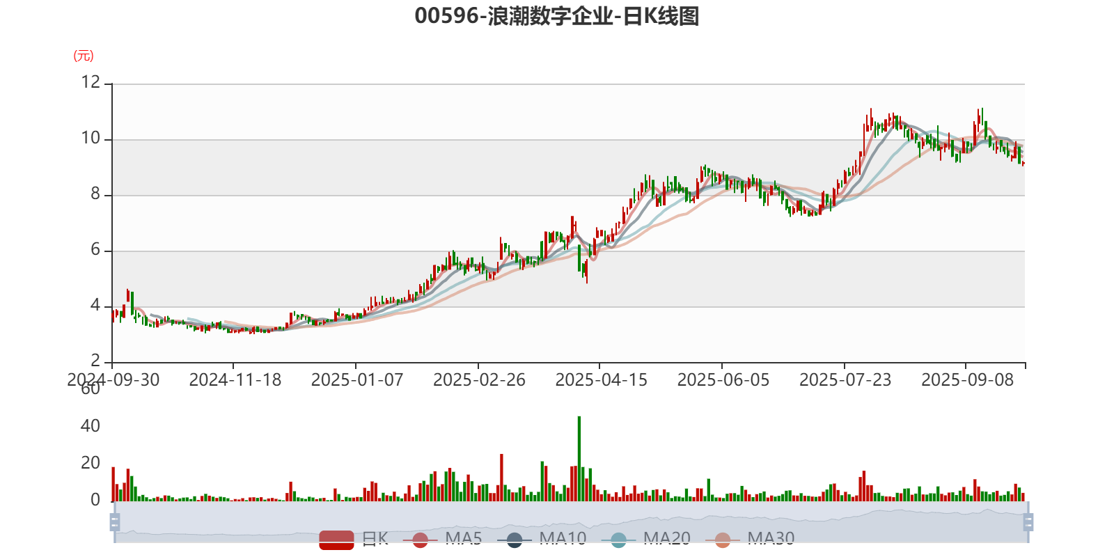 以9月29日收盘价计算,浪潮数字企业目前市盈率(TTM)约20.82倍,市净率(TTM)约3.67倍,市销率(TTM)约1.14倍。