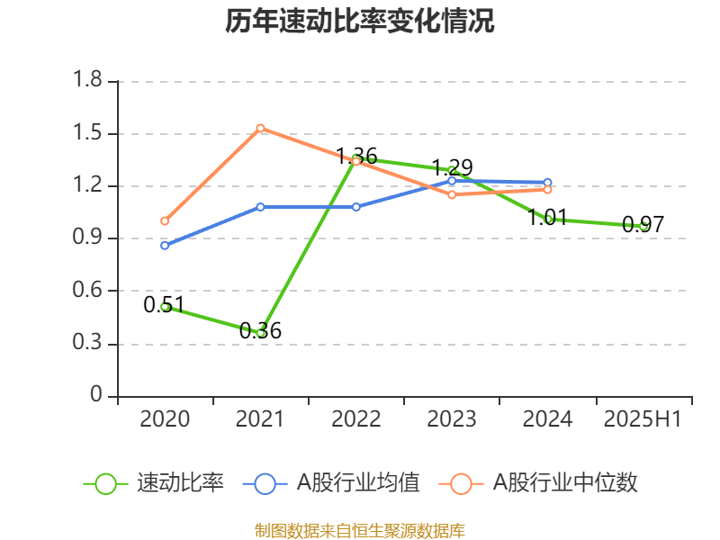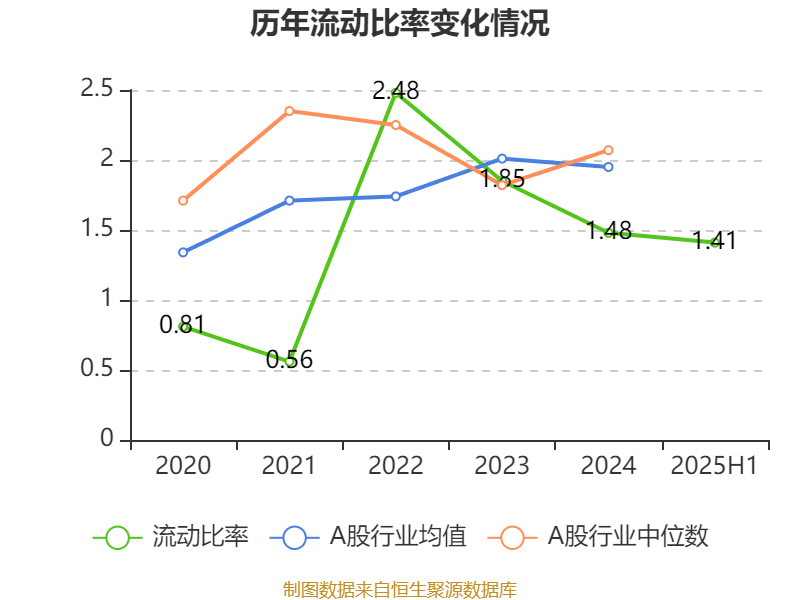 2025年上半年,公司流动比率为1.41,速动比率为0.97。