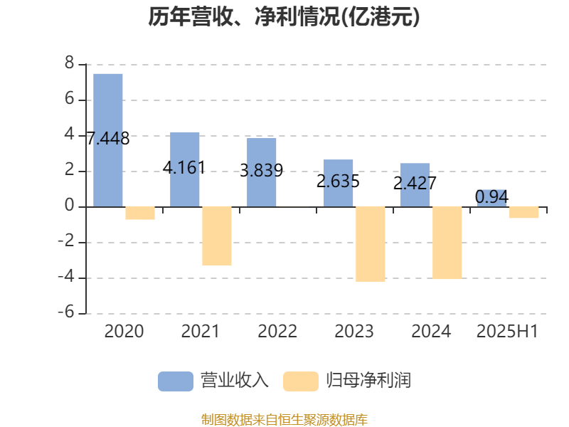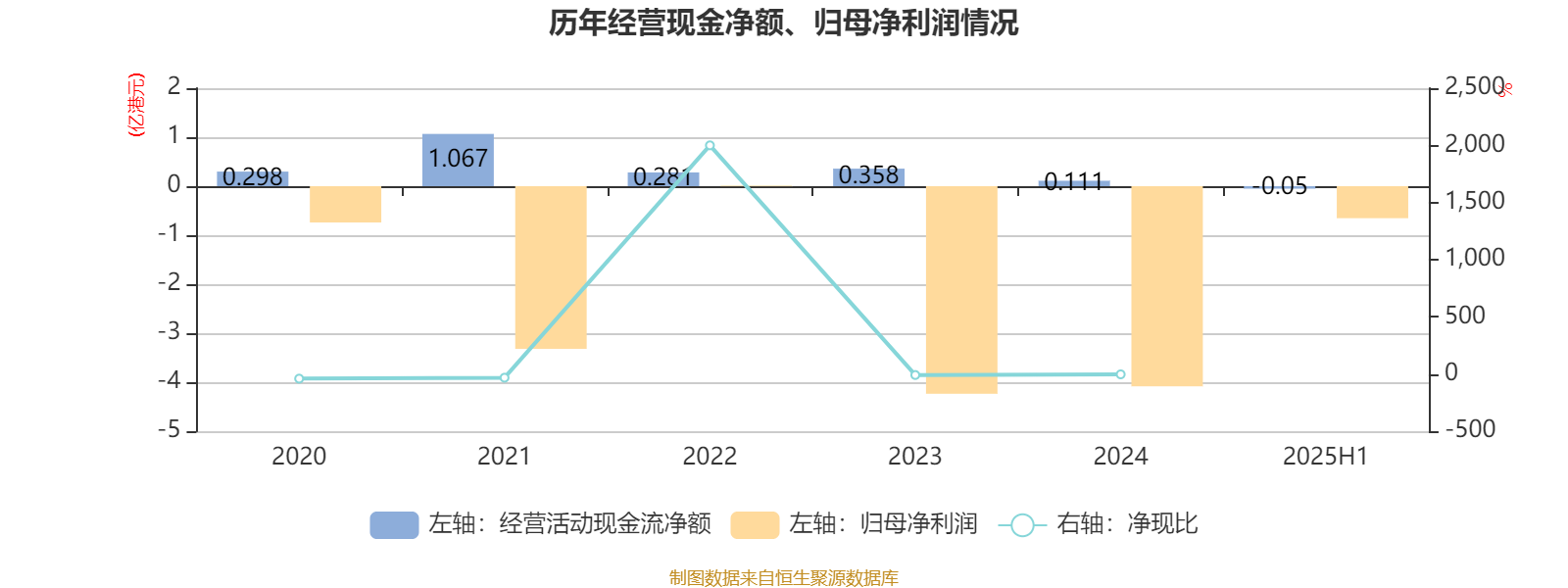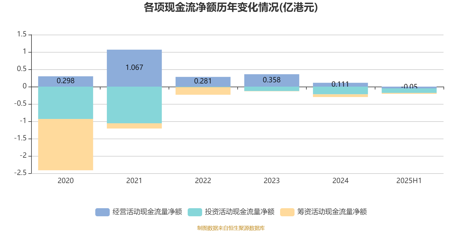 2025年上半年,公司经营活动现金流净额为-501.7万港元;筹资活动现金流净额-262.5万港元;投资活动现金流净额-1323.7万港元。