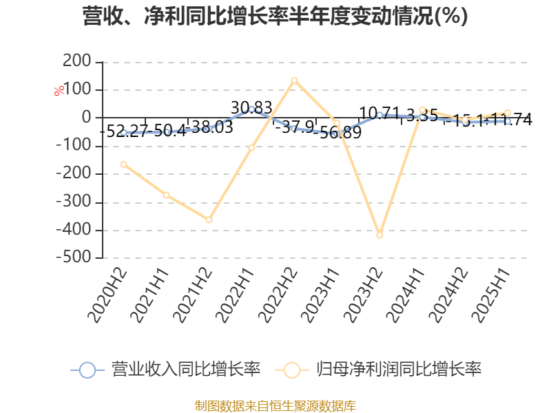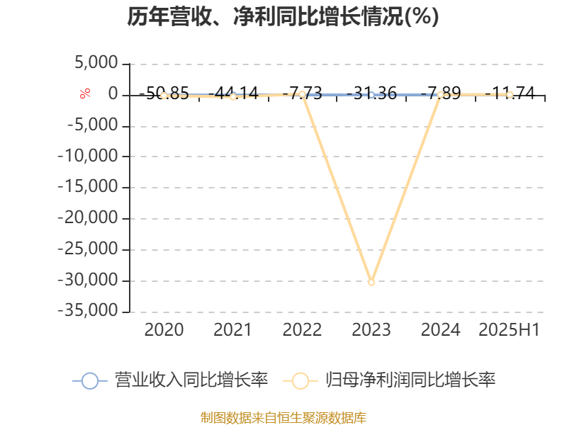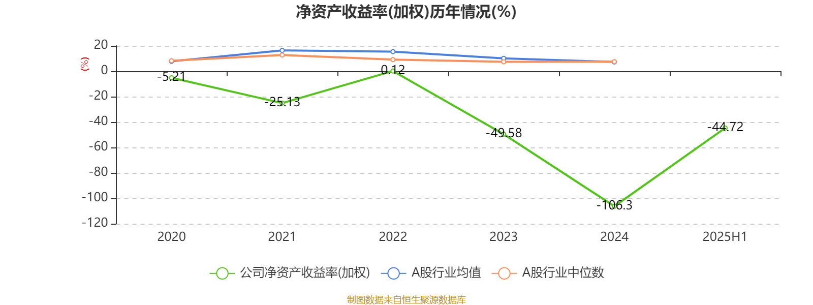 2025年上半年,公司平均净资产收益率为-44.72%,较上年同期下降30.39个百分点。