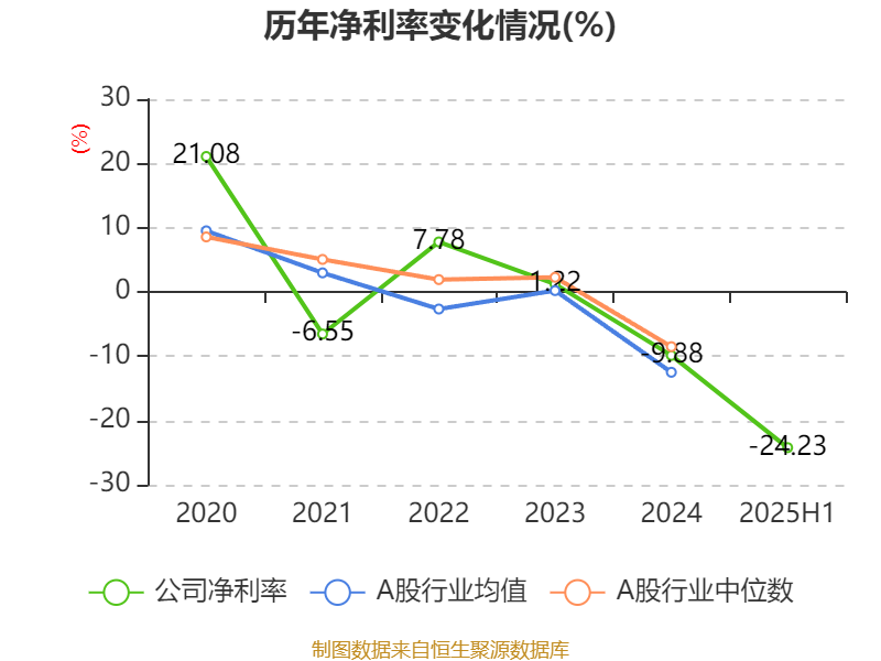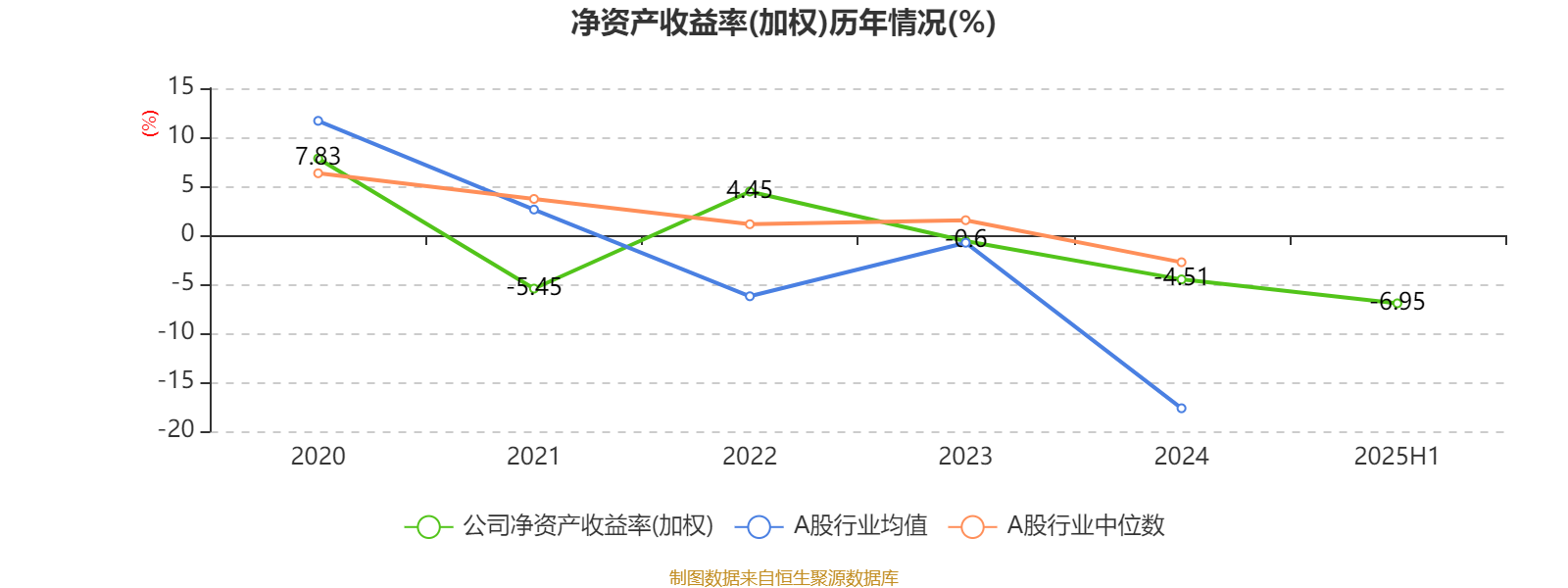 2025年上半年,公司平均净资产收益率为-6.95%,较上年同期下降4.28个百分点。