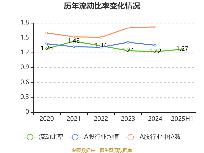 2025年上半年,公司流动比率为1.27,速动比率为0.26。