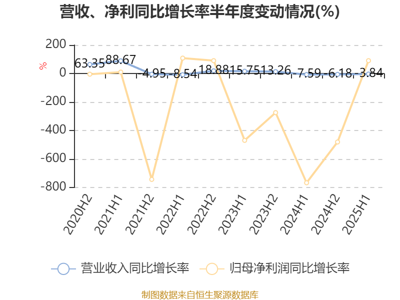 2025年上半年,公司平均净资产收益率为-1.9%,较上年同期上升12.97个百分点。
