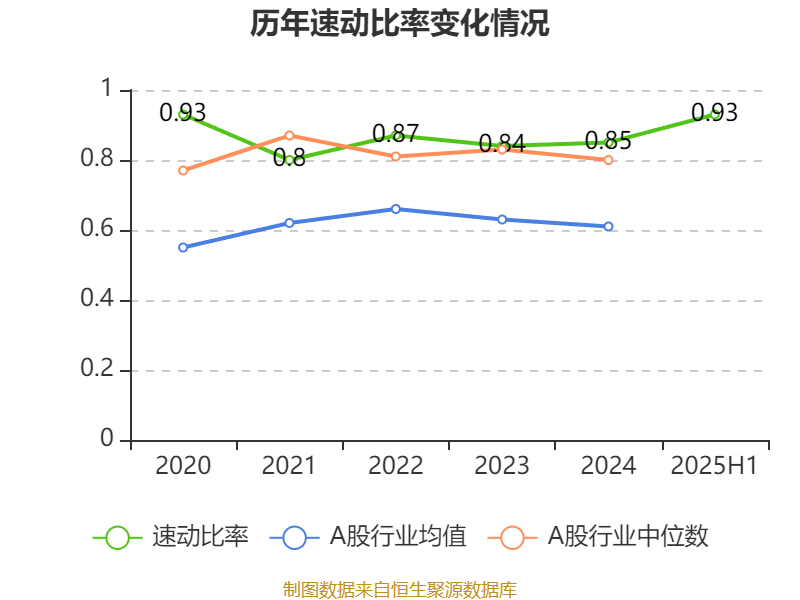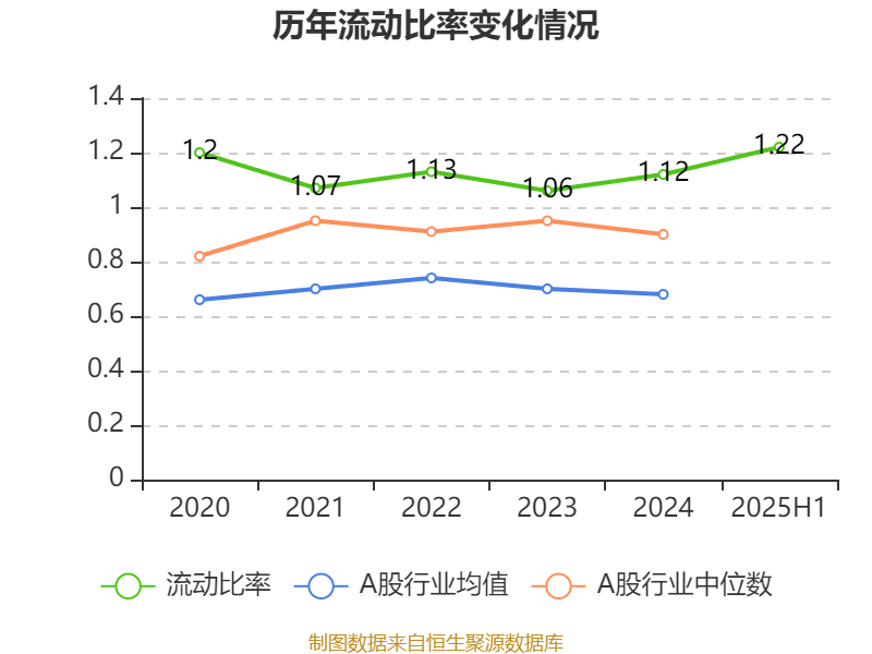 2025年上半年,公司流动比率为1.22,速动比率为0.93。