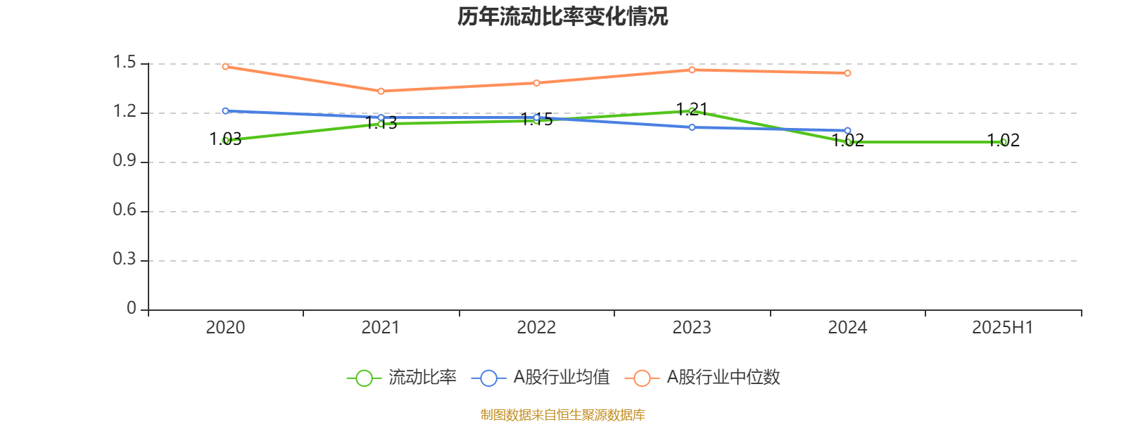 2025年上半年,公司流动比率为1.02。