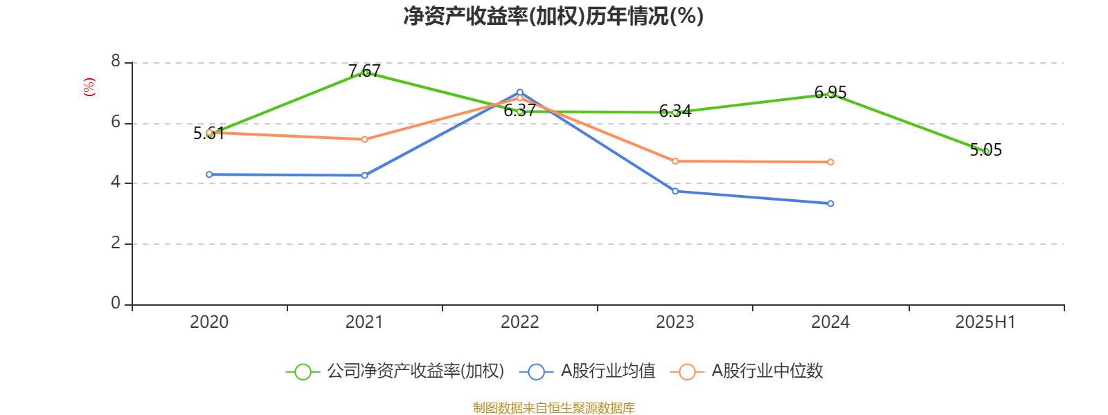 2025年上半年,公司平均净资产收益率为5.05%,较上年同期上升1.02个百分点。