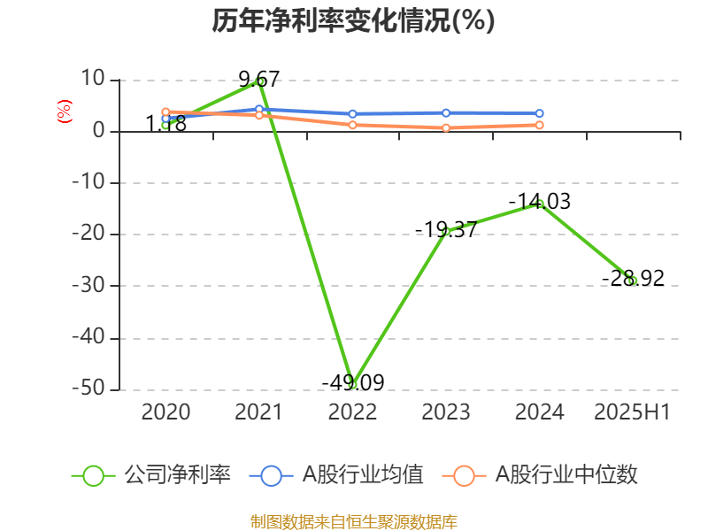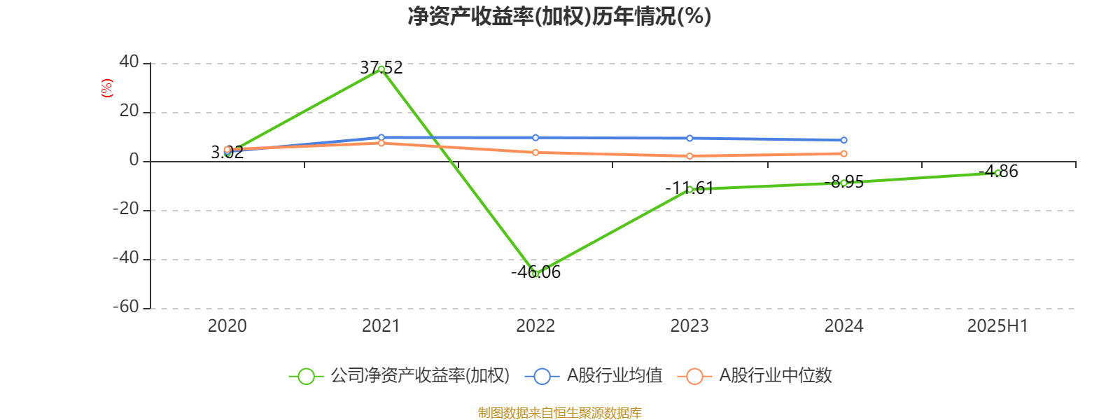 2025年上半年,公司平均净资产收益率为-4.86%,较上年同期上升0.2个百分点。