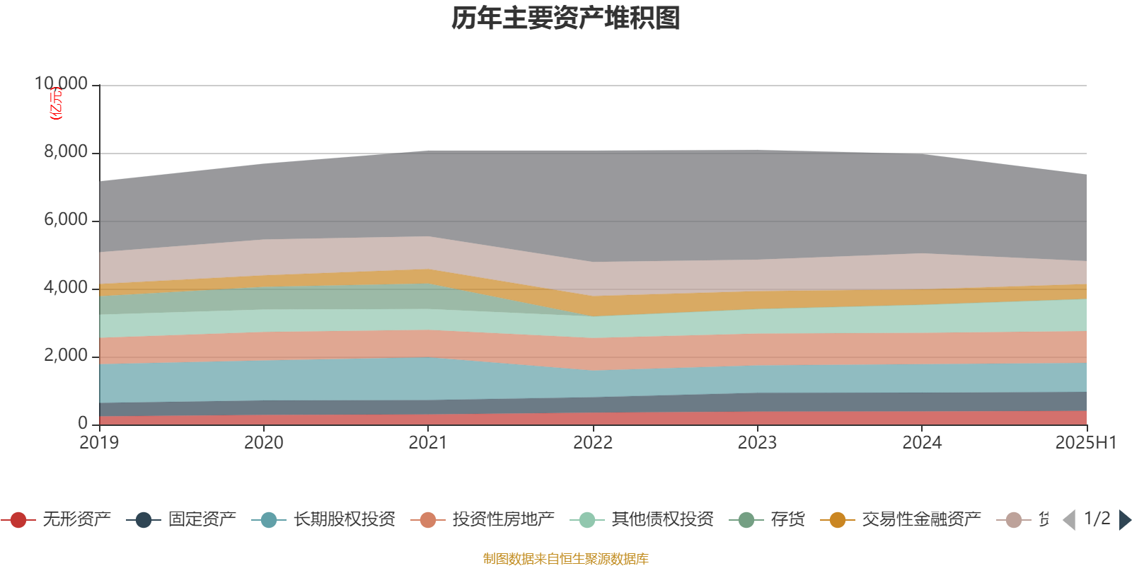 资产重大变化方面,截至2025年上半年,公司货币资金较上期末减少36.21%,占公司总资产比重下降4.13个百分点;债权投资较上期末减少75.14%,占公司总资产比重下降2.57个百分点;其他债权投资较上期末增加14.63%,占公司总资产比重上升2.5个百分点;发放贷款和垫款较上期末减少99.62%,占公司总资产比重下降1.7个百分点。