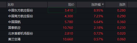 港股航空板块表现活跃 中国东方航空股份涨近9%