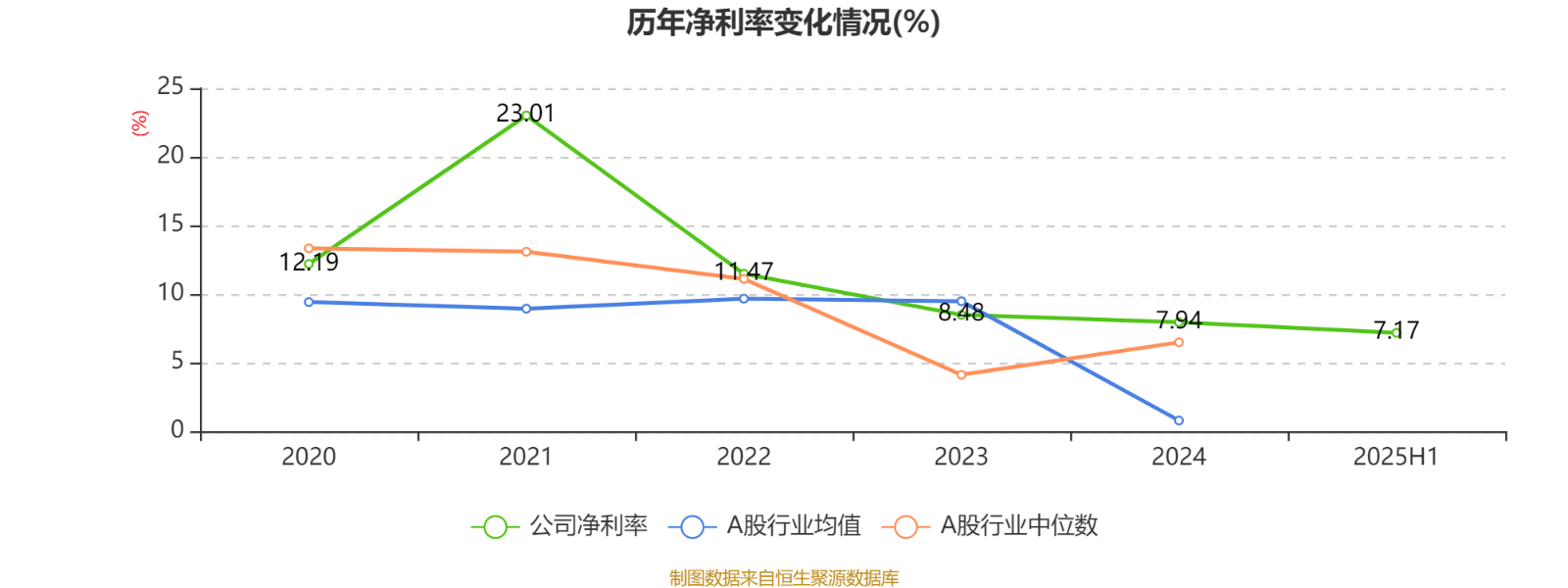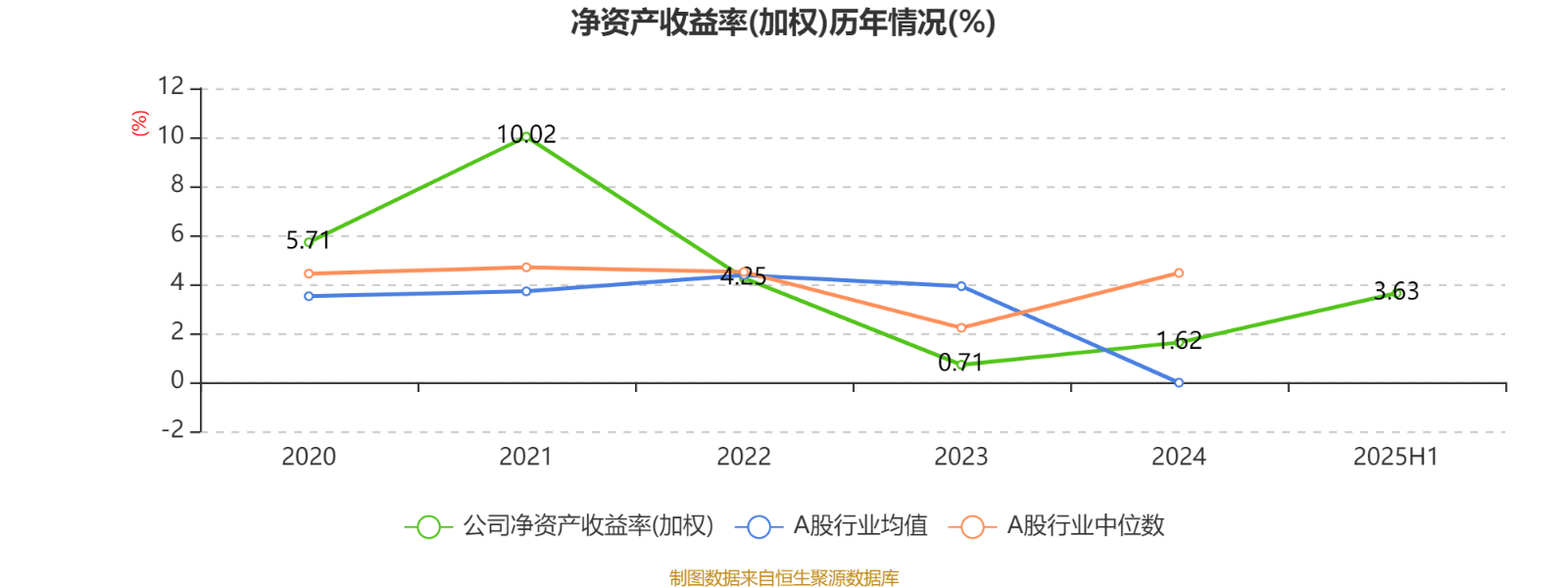 2025年上半年,公司平均净资产收益率为3.63%,较上年同期上升3.04个百分点。