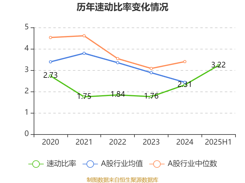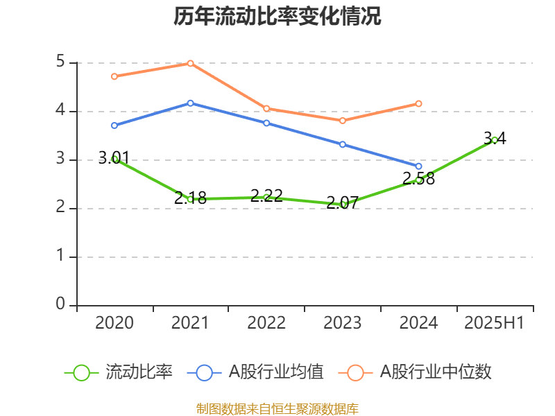 2025年上半年,公司流动比率为3.40,速动比率为3.22。
