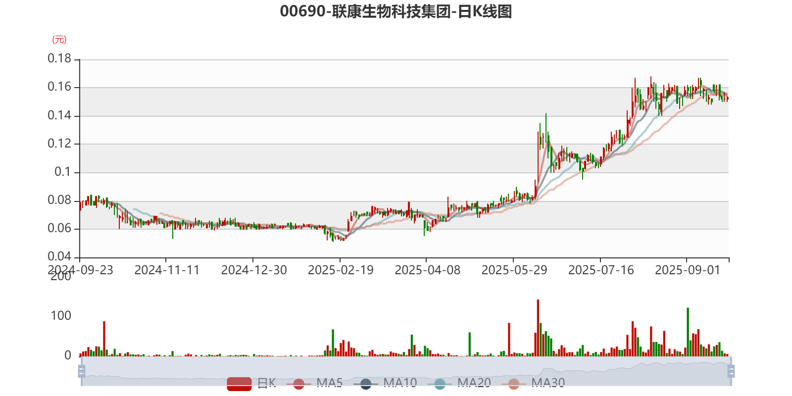 中证智能财讯联康生物科技集团(00690)9月22日披露2025年中期报告。报告期内,公司实现营业收入3.1亿港元,同比增长13.38%;归母净利润7595.5万港元,同比增长12.72%;经营活动产生的现金流量净额为5828.2万港元,同比增长7.81%;据报告显示,联康生物科技集团基本每股收益为0.0127港元,平均净资产收益率为21.44%。
