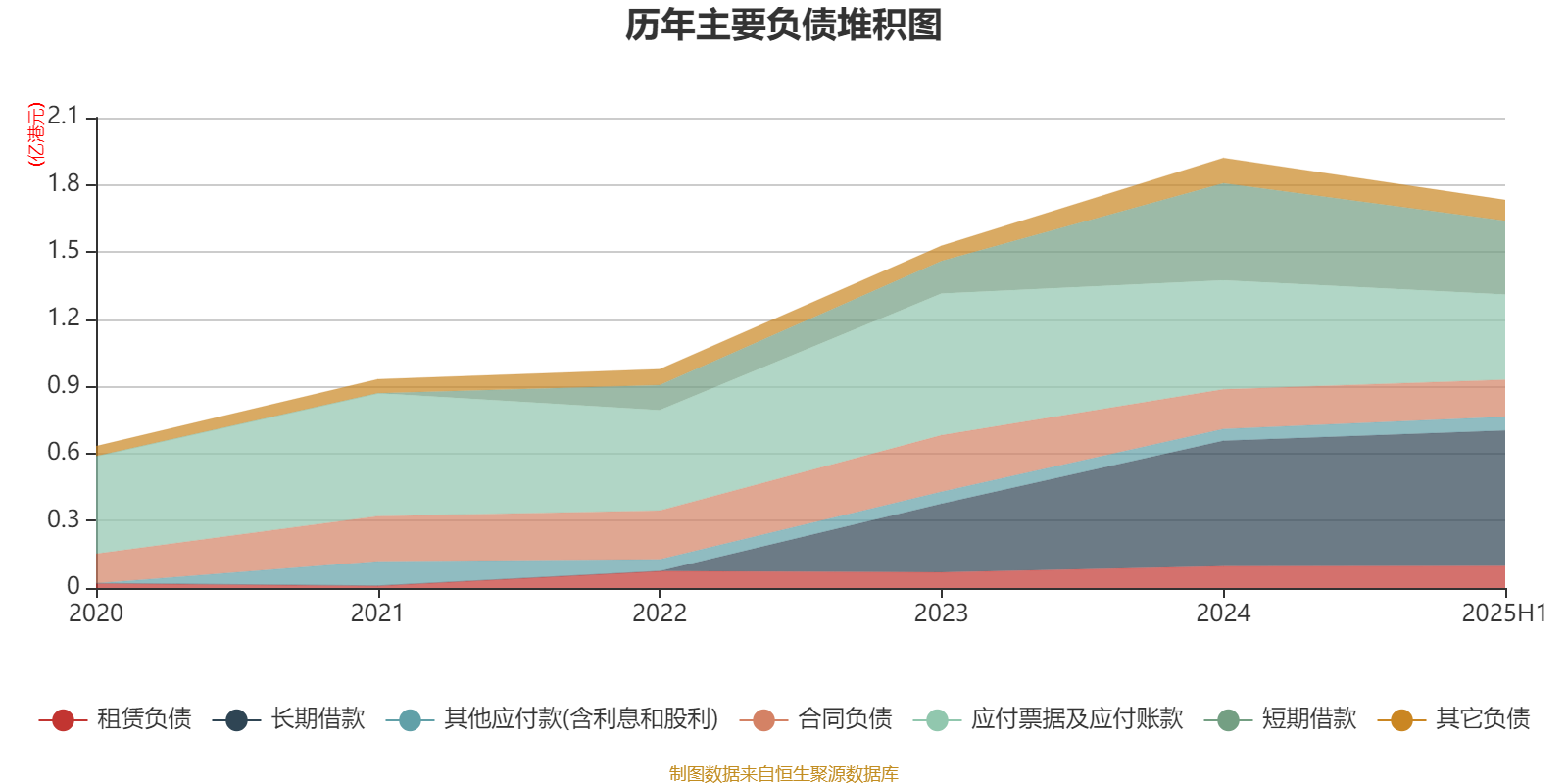 负债重大变化方面,截至2025年上半年,公司应付票据及应付账款较上期末减少21.86%,占公司总资产比重下降2.56个百分点;短期借款较上期末减少23.79%,占公司总资产比重下降2.43个百分点;合同负债较上期末减少5.98%,占公司总资产比重下降0.43个百分点;租赁负债较上期末增加0.96%,占公司总资产比重下降0.11个百分点。