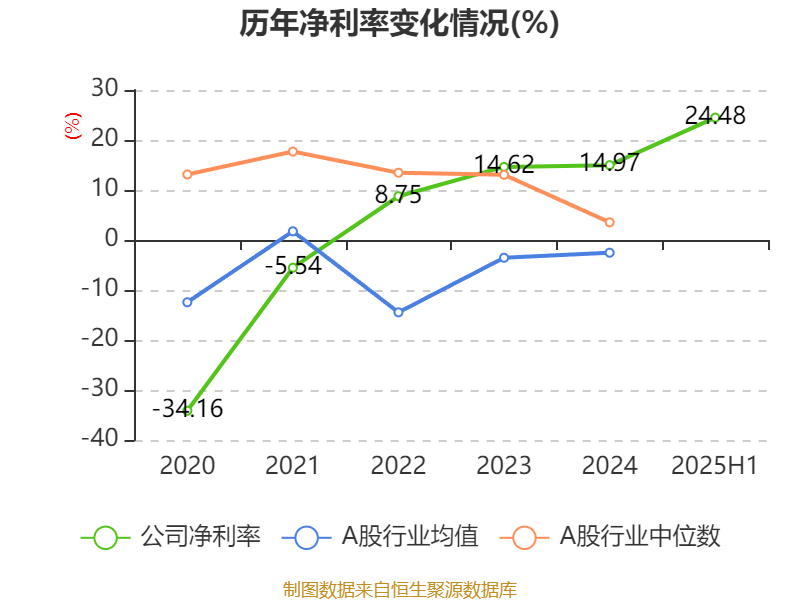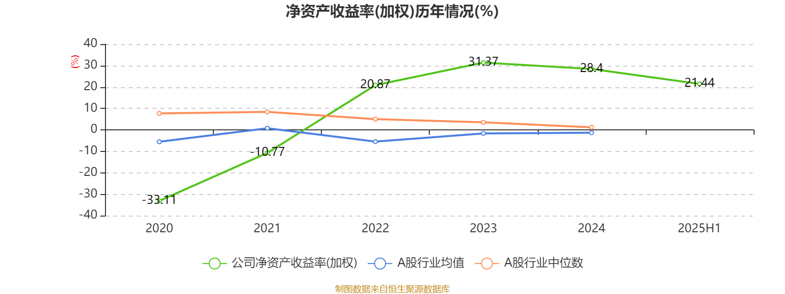 2025年上半年,公司平均净资产收益率为21.44%,较上年同期下降2.21个百分点。