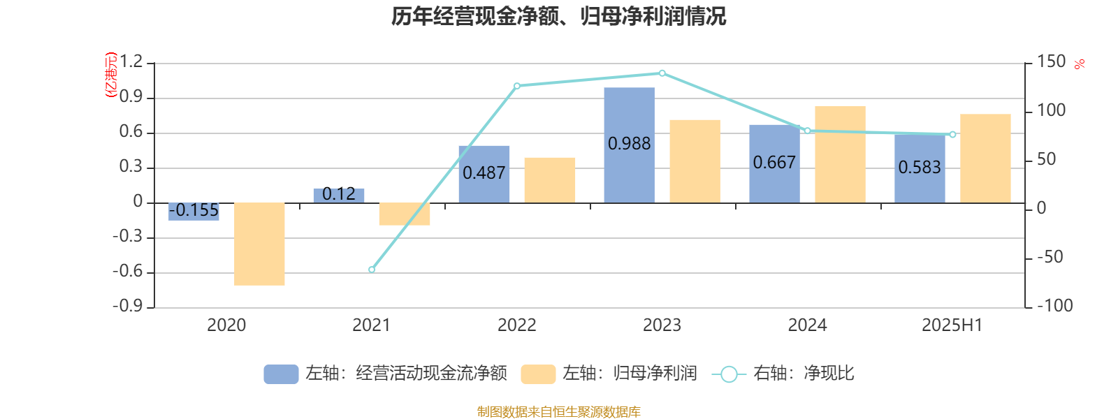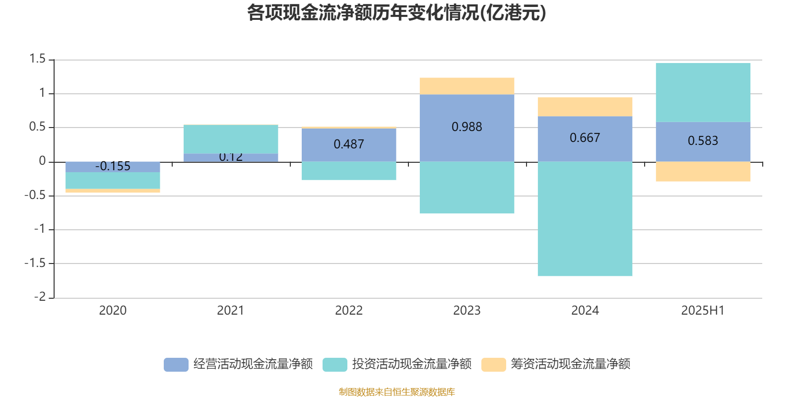 2025年上半年,公司经营活动现金流净额为5828.2万港元;筹资活动现金流净额-2906.4万港元;投资活动现金流净额8664.9万港元。