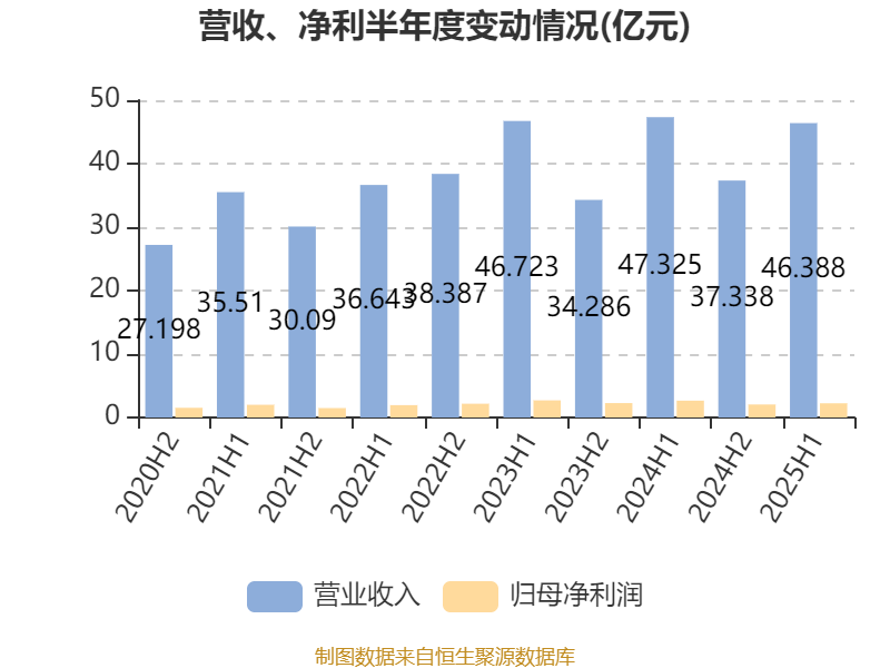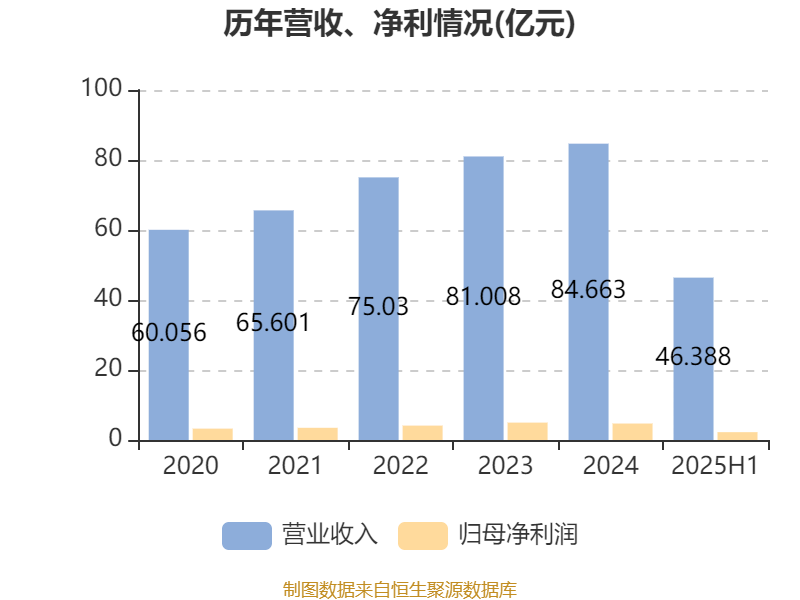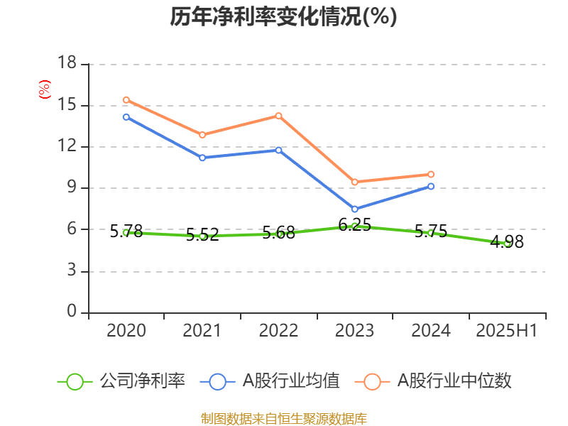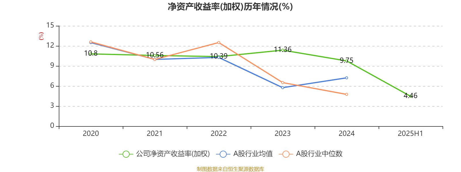 2025年上半年,公司平均净资产收益率为4.46%,较上年同期下降1.22个百分点。