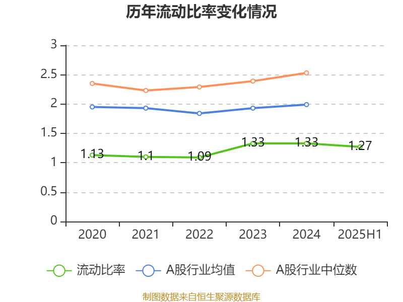 2025年上半年,公司流动比率为1.27,速动比率为0.88。