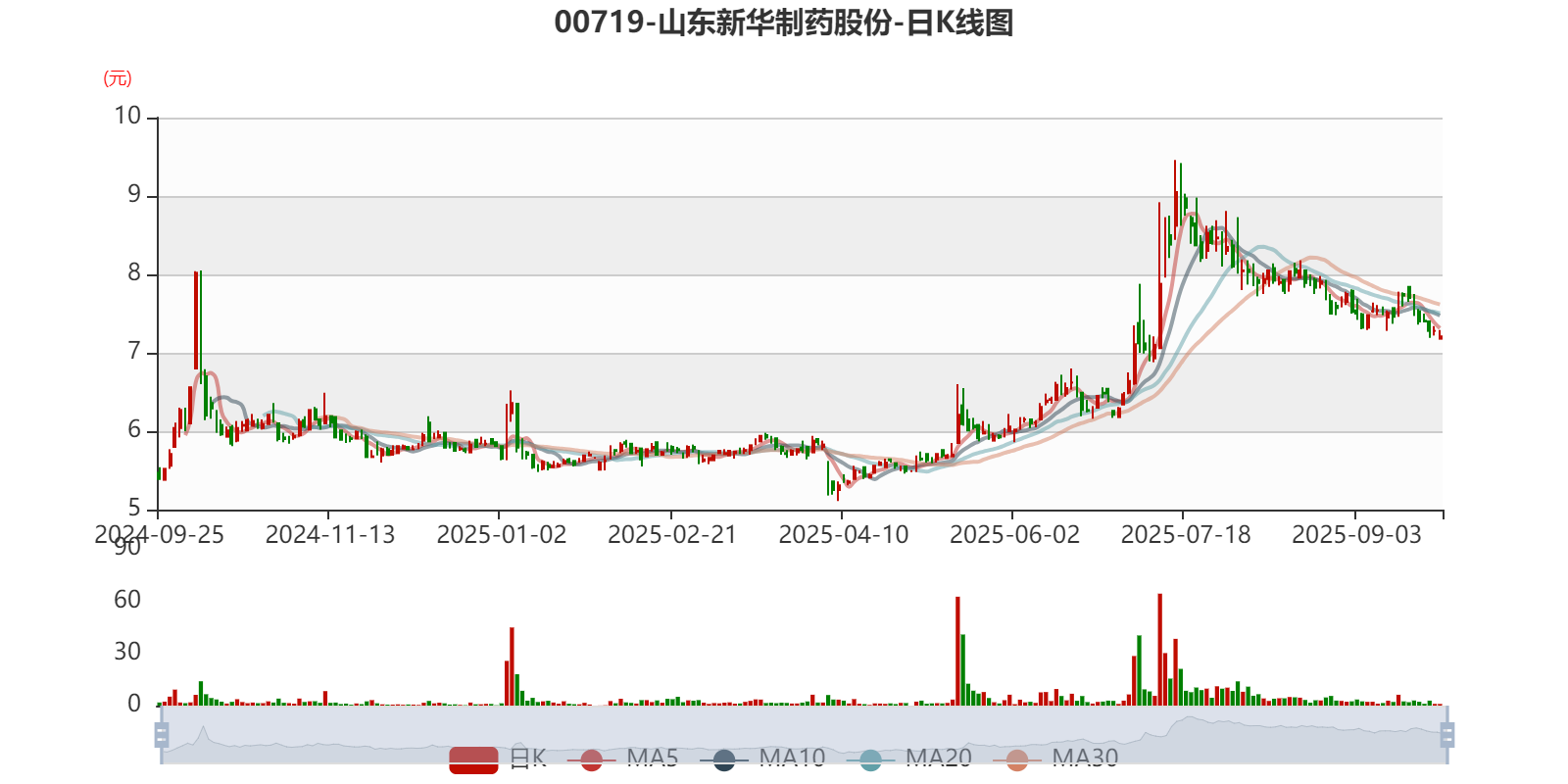 以9月24日收盘价计算,山东新华制药股份目前市盈率(TTM)约10.69倍,市净率(TTM)约0.89倍,市销率(TTM)约0.55倍。