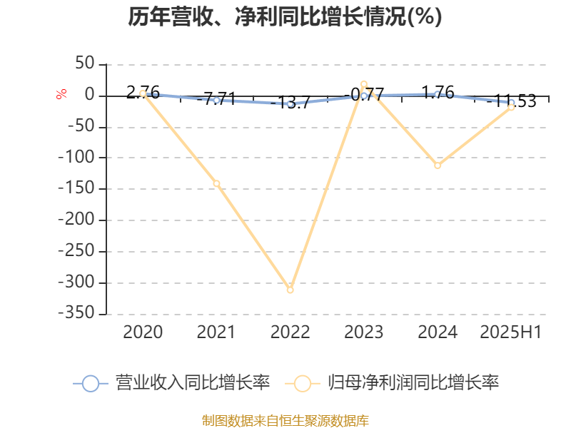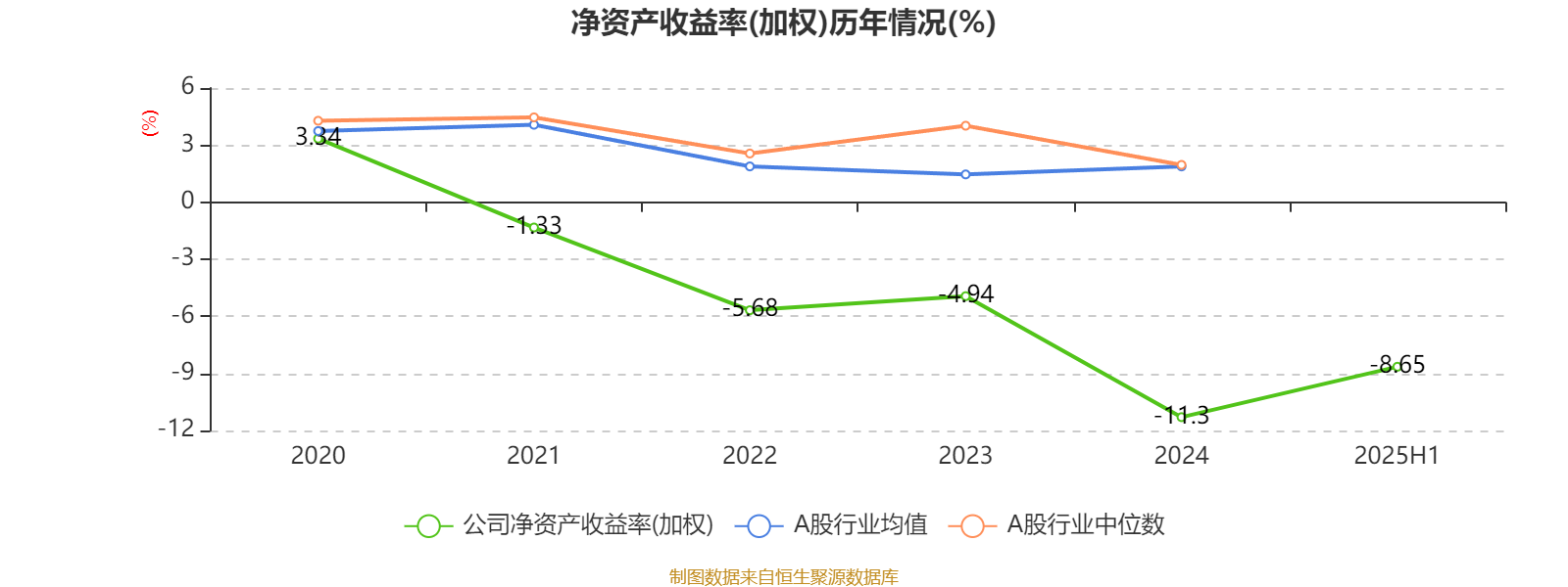 2025年上半年,公司平均净资产收益率为-8.65%,较上年同期下降2.32个百分点。
