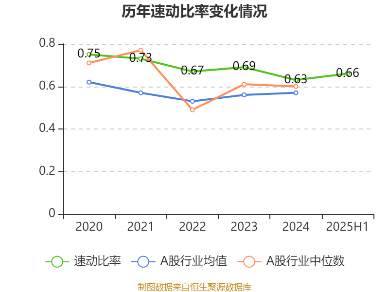 2025年上半年,公司流动比率为0.96,速动比率为0.66。