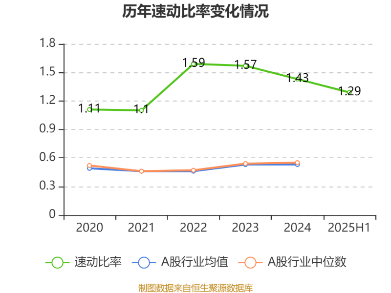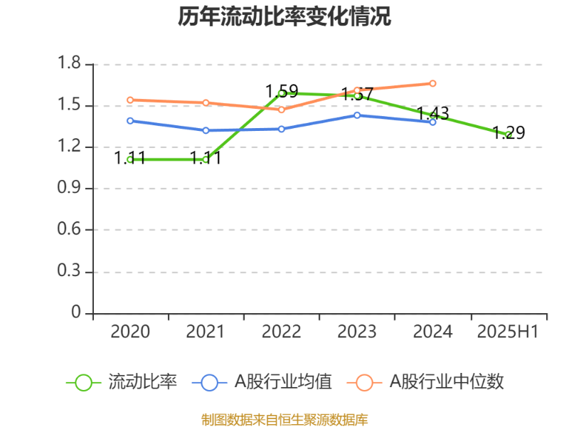 2025年上半年,公司流动比率为1.29,速动比率为1.29。