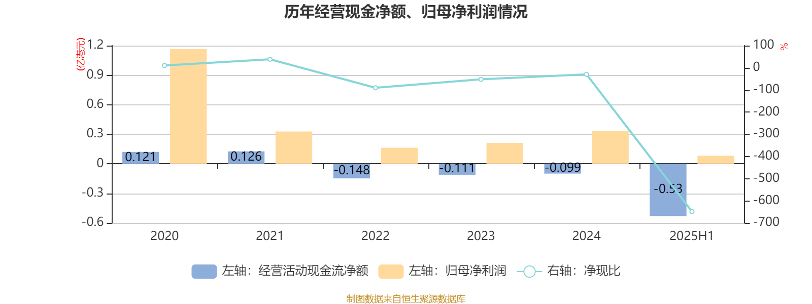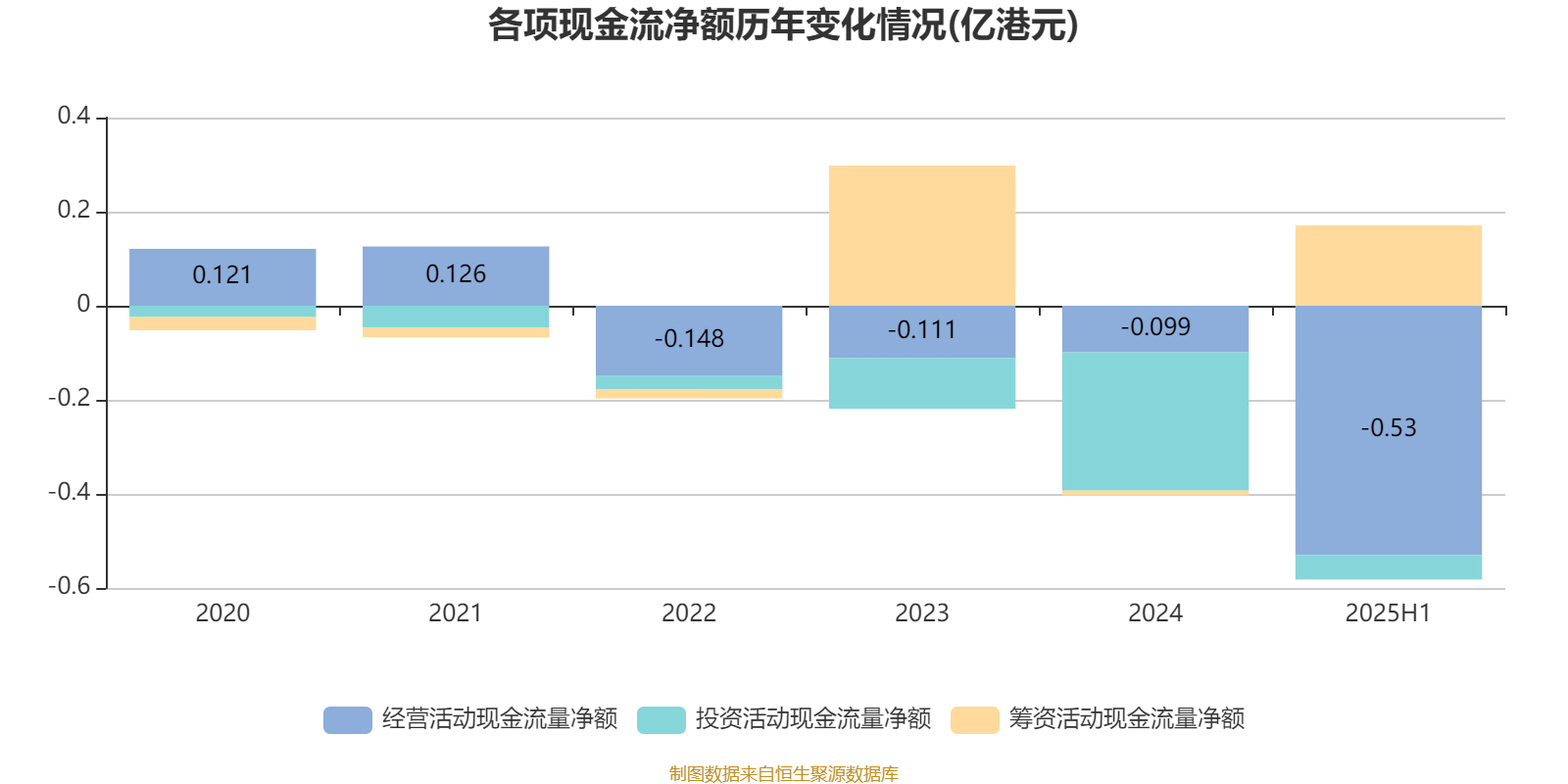2025年上半年,公司经营活动现金流净额为-5300.5万港元;筹资活动现金流净额1713.6万港元;投资活动现金流净额-518.2万港元。