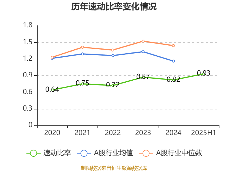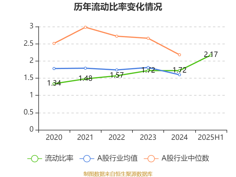 2025年上半年,公司流动比率为2.17,速动比率为0.93。