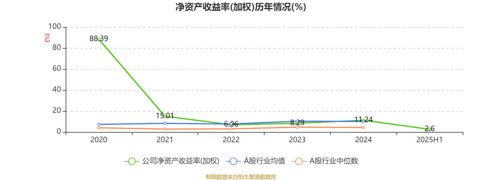 2025年上半年,公司平均净资产收益率为2.6%,较上年同期下降3.71个百分点。