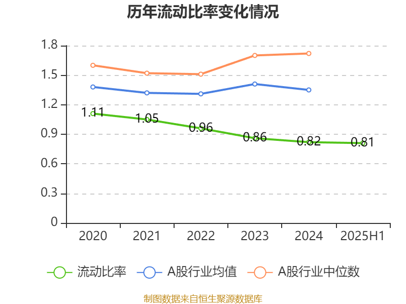 2025年上半年,公司流动比率为0.81,速动比率为0.2。