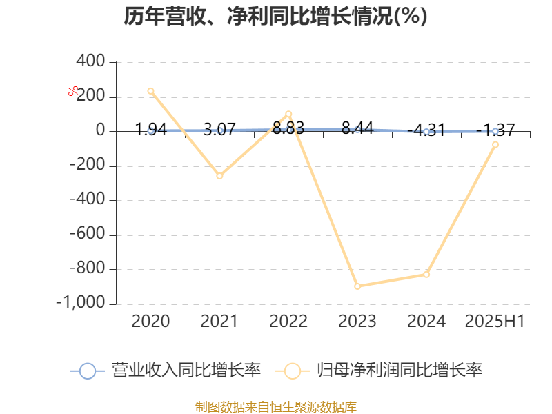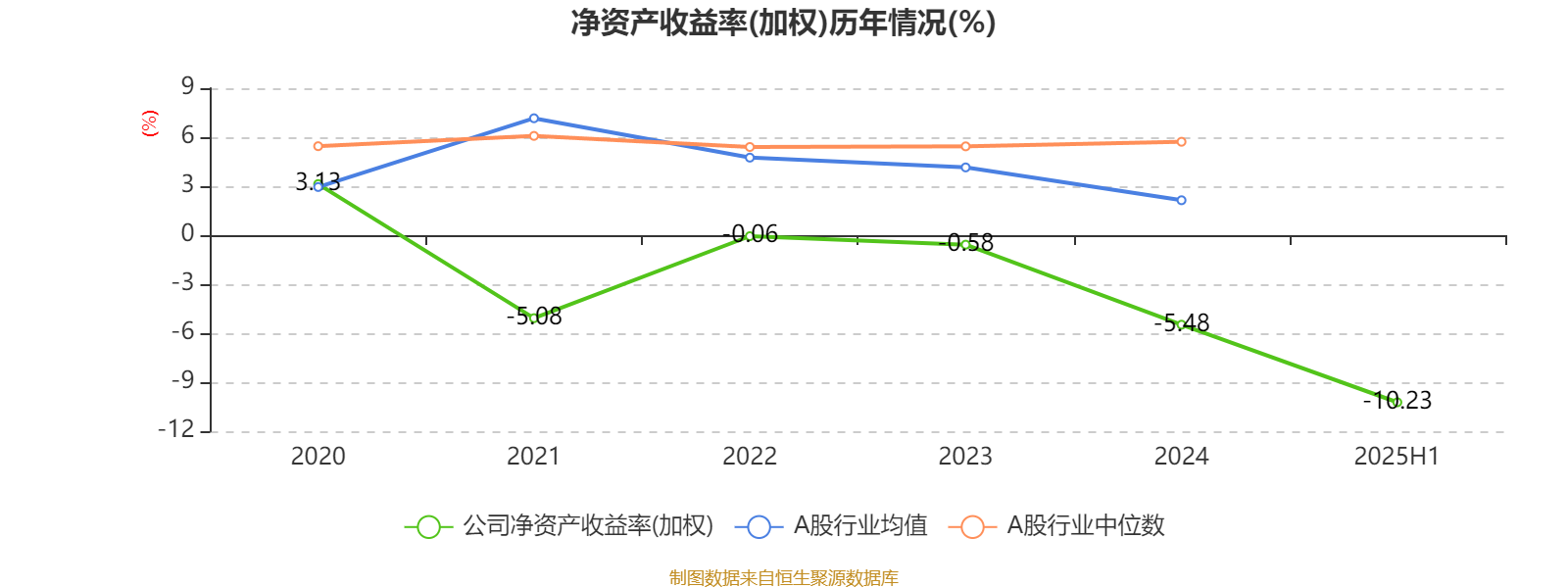 2025年上半年,公司平均净资产收益率为-10.23%,较上年同期下降4.98个百分点。